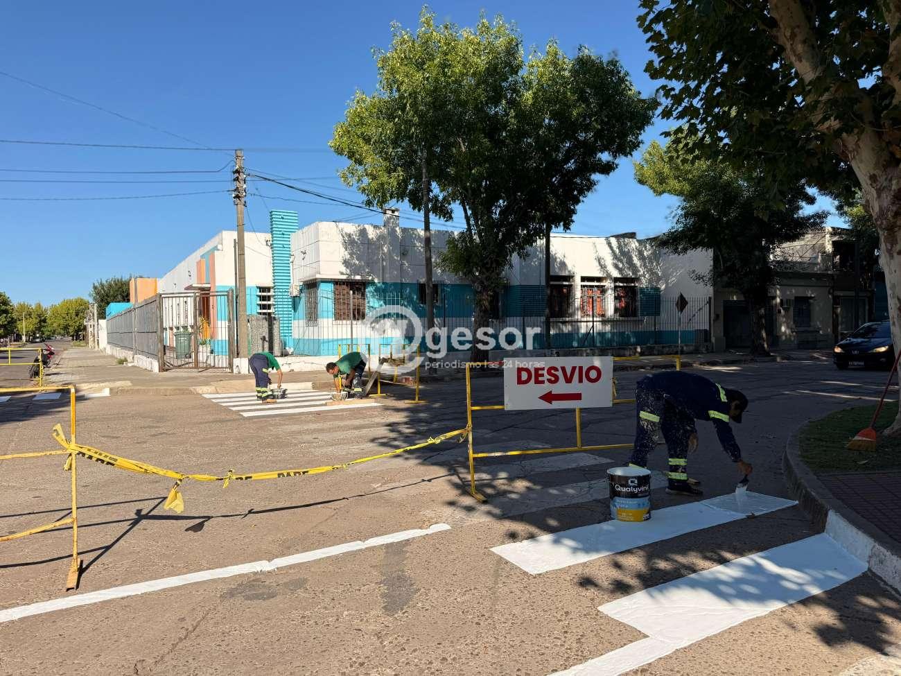 Se vienen realizando tareas de mantenimiento de sendas peatonales y cruces, así como la colocación de nueva cartelería de tránsito en distintos puntos de la ci...