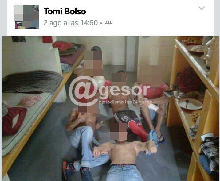 A través de las redes sociales, cinco reclusos que al parecer comparten una celda, se fotografiaron en varias ocasiones y subieron las tomas a la redes sociales desde donde las hicieron llegar a @gesor para mostrar que a pocos meses de inaugurada la nueva cárcel, en este caso en paraje Pense, la gestión del INR también empezó a hacer agua" a la hora de los controles y como ocurría en la vieja cárcel, los reclusos logran tener celulares y subirlas a las redes sociales.