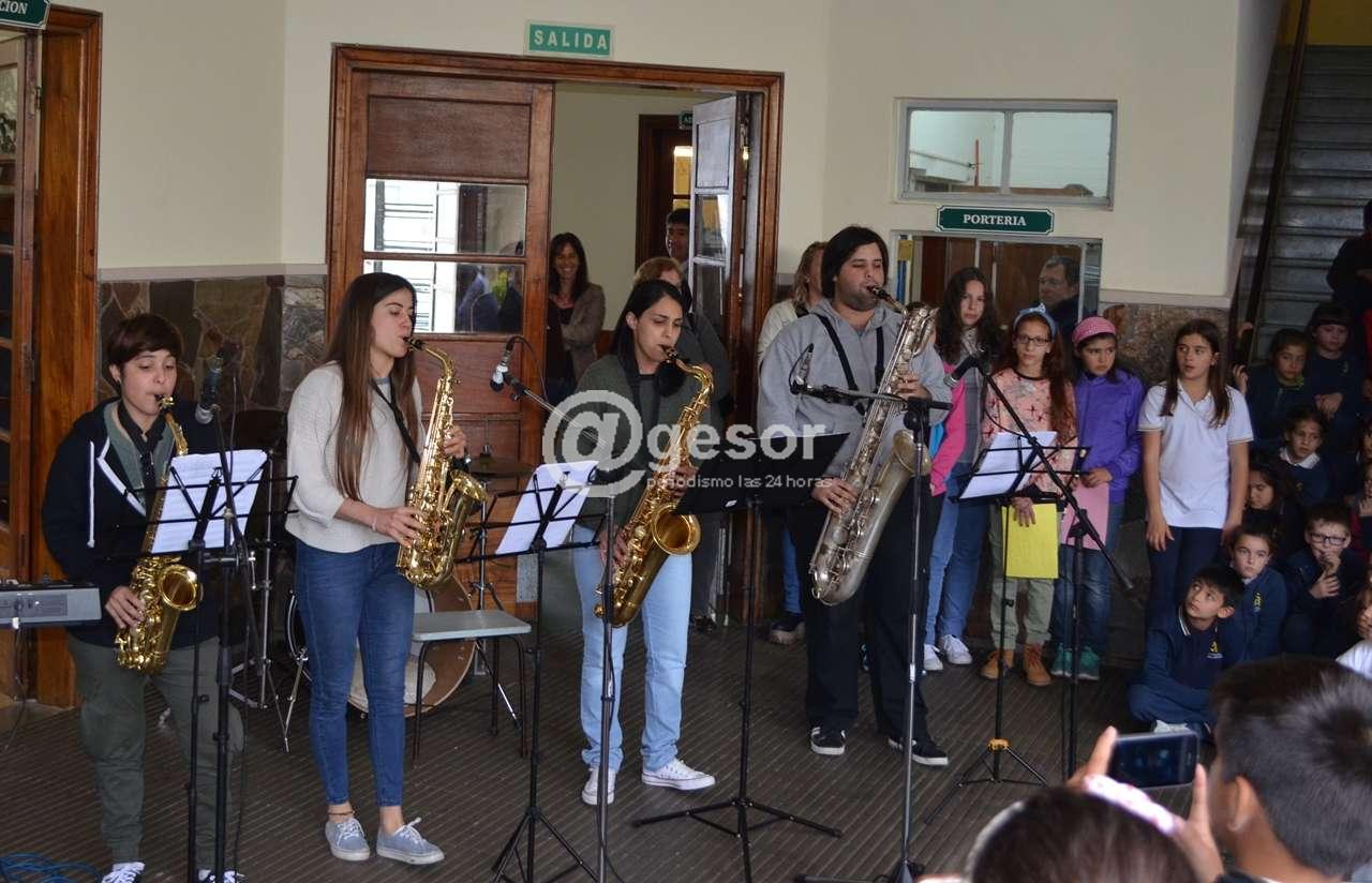 En el caso de la actividad realizada en el Colegio “San Miguel” cuyas imágenes son las que acompañan esta nota, intervino el Coro de la institución y una cuerda de tambores de la comparsa Punto y Raya.