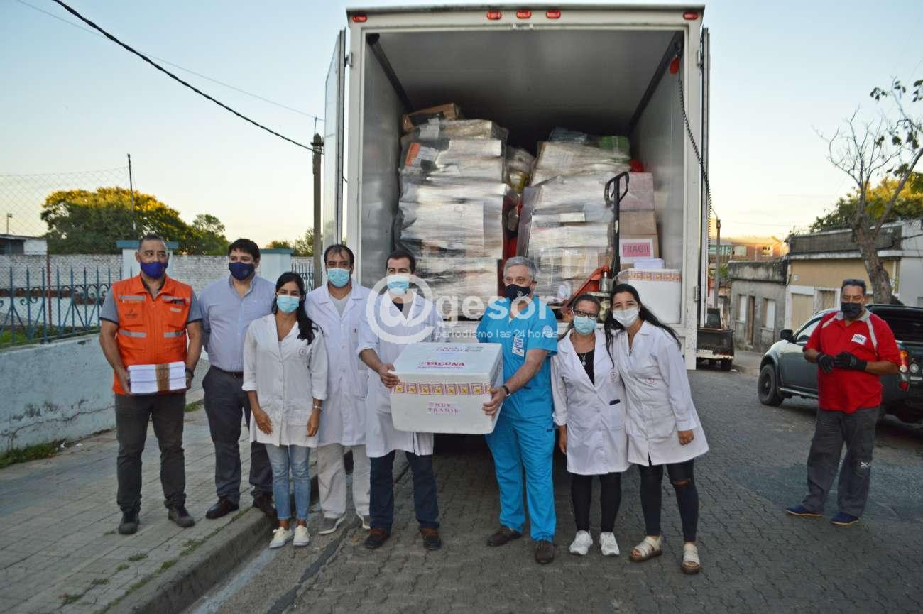 Al arribo de las vacunas estuvieron esperando el Director Departamental de Salud Dr. Rafael Saráchaga, el Director del Hospital de Mercedes Dr. César Cresci, el Coordinador del CECOED Zoilo Cheveste, el Referente de la Lucha Antituberculosa Cristian Ortega, el Jefe de la Zona Operacional I Cap. Marcelo Talagorría, junto a personal del centro de vacunación.