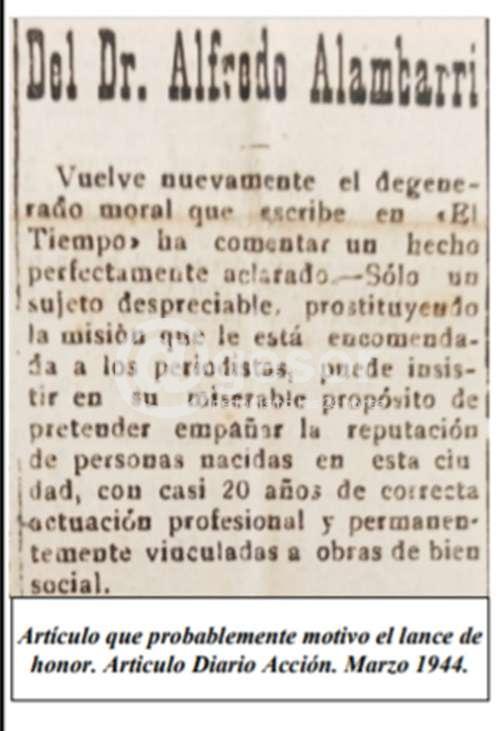 En esta publicación “sacaremos del olvido” el duelo a pistola entre el doctor Alfredo Alambarri y el escribano Pedro Besozzi.