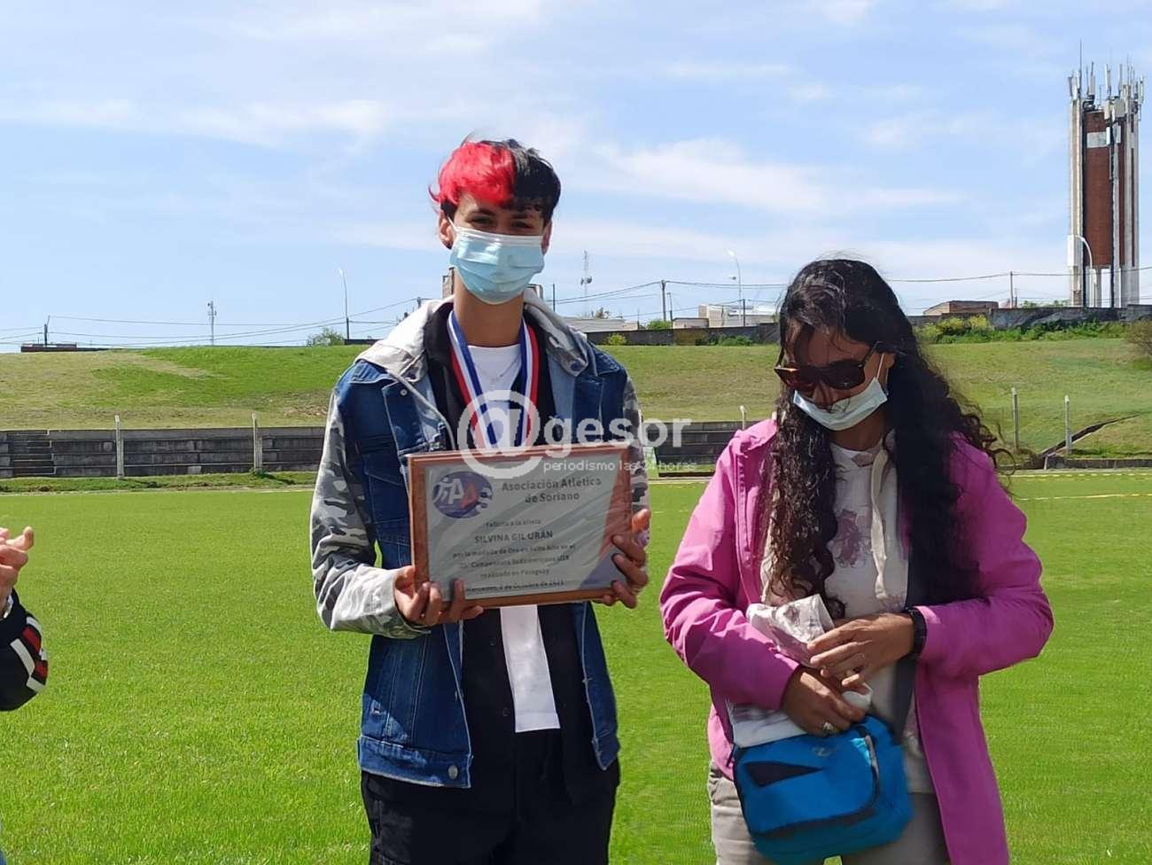 Este sábado en el mrco del Campeonato Regional de Atletismo "De las Promesas" que se desarrolló en el estadio "Luis Köster" de Mercedes. con la participación de delegaciones de Paysandú, Montevideo, San José, Colonia, Flores, se procedió a entrega de reconocimiento a la atleta doloreña Silvina Gil, medalla de oro en el Sudamericano U18 de Paraguay defendiendo a Uruguay.