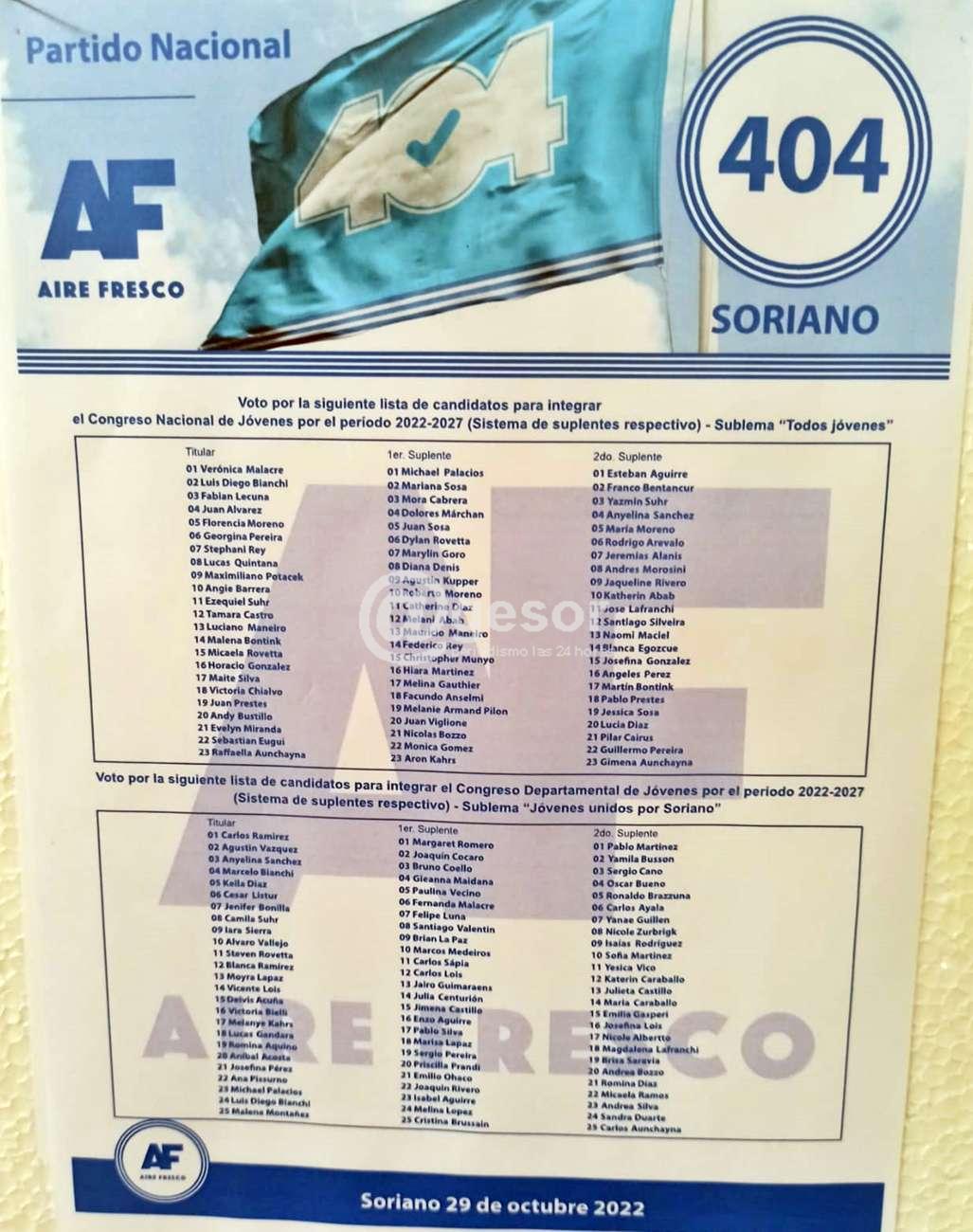En el caso de Soriano se presentaron 9 hojas de votación, las que adjuntamos a esta nota, así como también el plan circuital donde se puede sufragar en todo el departamento incluyendo algunas mesas volantes que ya están incluidas allí.