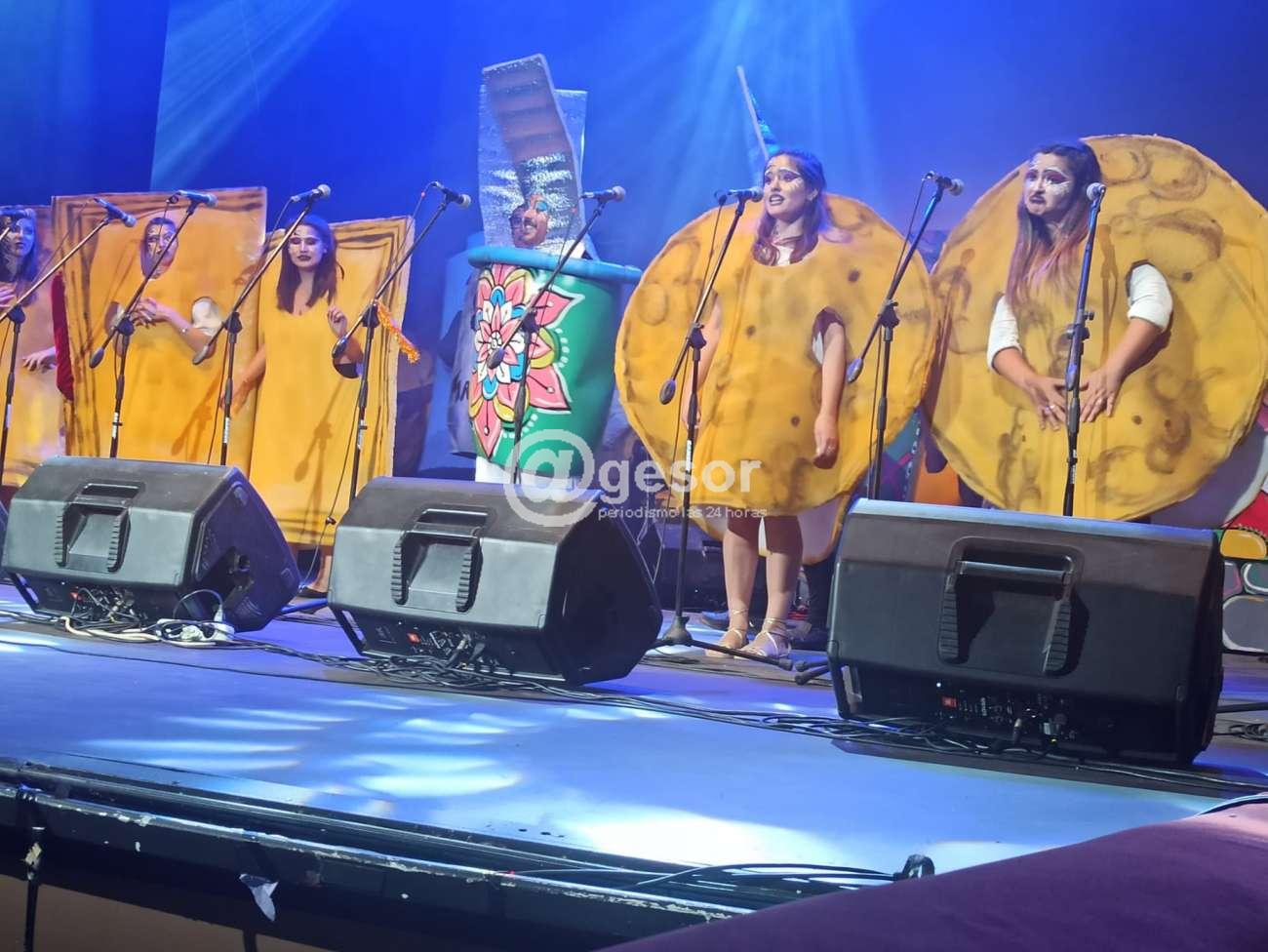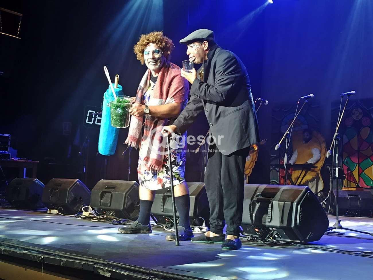 Comenzó su presentación a las 21.11 horas y prácticamente de entrada metió una mecha que causó risa en el público, señalando uno de los integrantes que debían actuar en el teatro porque un integrante del jurado estaba enfermo, que se trabataba de Aviar, a lo que otro compañero le aclaró que el integrante del jurado es Aguiar y lo de la enfermedad se trata de la gripe aviar por la aves, que no tenía nada que ver.