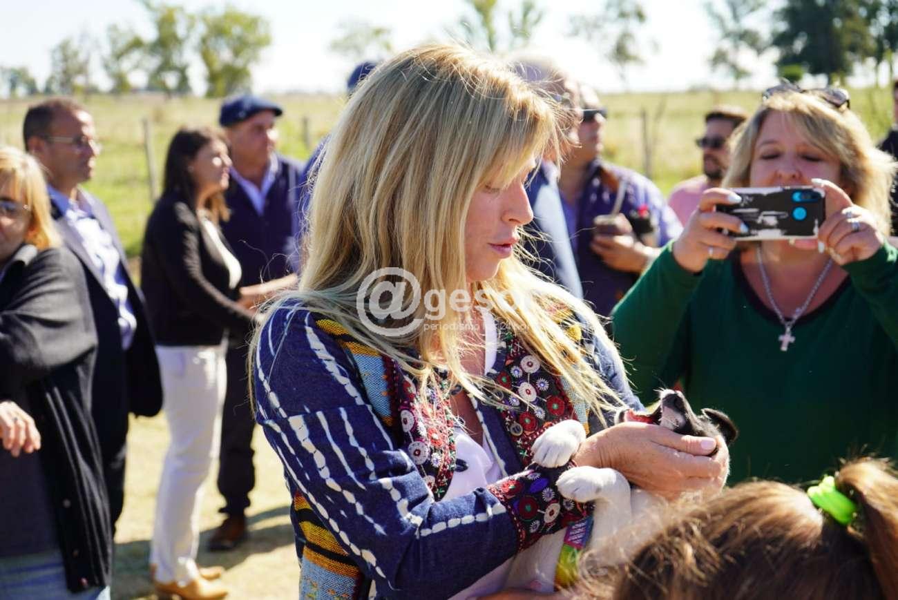 Lo hace acompañado del Intendente de Soriano Guillermo Besozzi, la Presidenta de la Junta Departamental de Soriano Andrea Nievas, Diputada María Fajardo, el Alcalde de Palmitas Juan Vincon, Vice Presidente de Ancap Diego Durand, y otras autoridades nacionales y departamentales, además de las autoridades organizadoras que pertenecen al Club de Leones Palmitas.