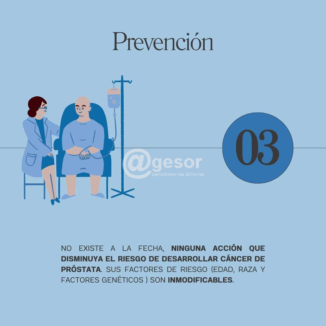 El presidente de la SUU aclaró que el cáncer de próstata no se relaciona específicamente con la dieta o la ingesta de algún fármaco, como puede ser la testosterona, y expresó que “no existe, a la fecha, ninguna acción que disminuya el riesgo de desarrollar cáncer de próstata”. “Sus factores de riesgo —edad, raza y factores genéticos— son inmodificables”, sostuvo.