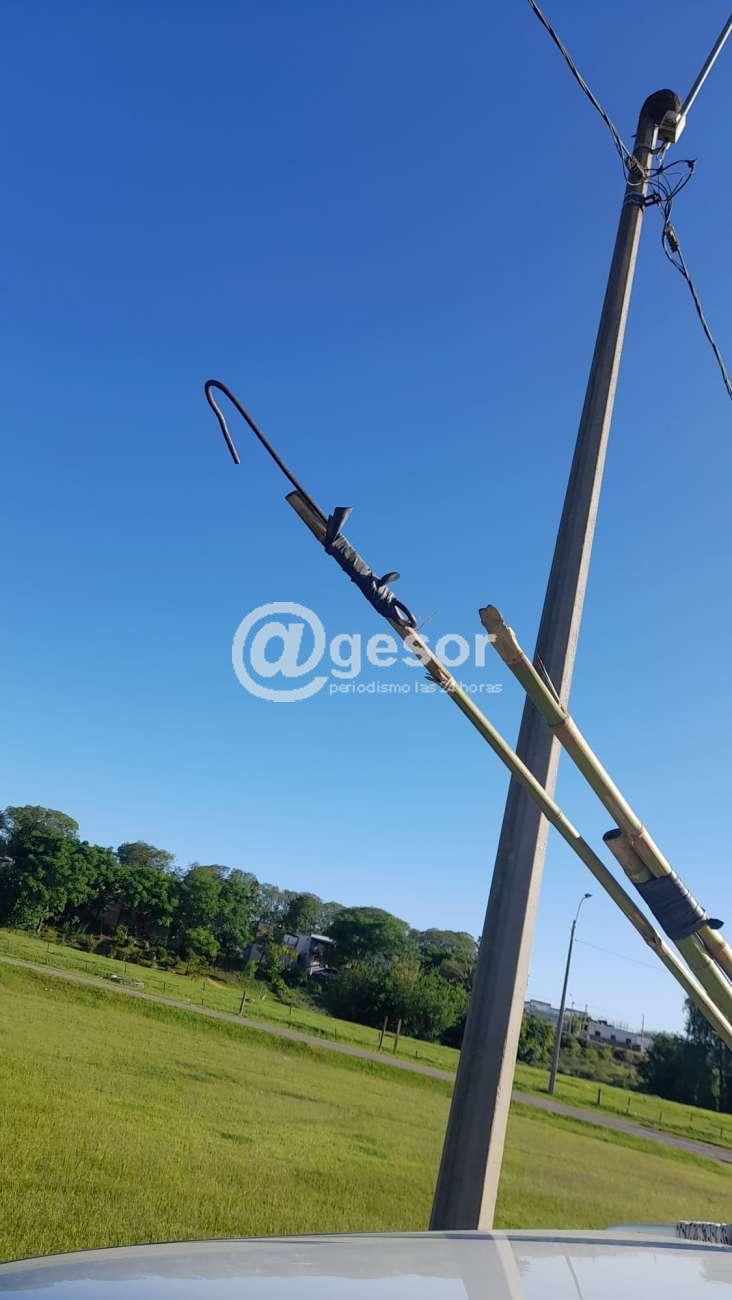 Fue durante una recorrida que se constató la presencia junto a una columna, de un dispositivo confeccionado con cañas tacuara que portaba un elemento con filo en la parte superior y un gancho. Dicho elemento de fabricación casera aparentemente es de los que se usan para cortar los cables y descolgarlos desde las uniones a cada brazo de luminaria, retirando de esa manera tramos de cable pre-ensamblado de entre 40 y 50 m.