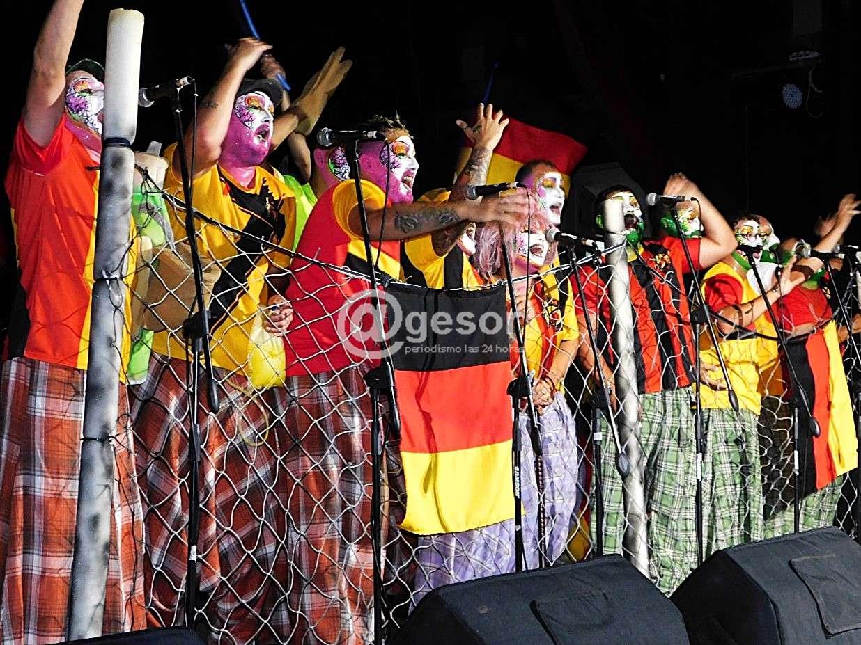 Y con Las Fritas no fue la excepción, desde el principio la murga cantó y lo hizo muy bien, en forma afinada, cambiando la musicalidad en forma reiterada, lo que lo hacía agradable al oído, subiendo y bajando los tonos, con solistas que se destacaron y especialmente dos partes de la actuación donde la murga crece y el público responde en el ida y vuelta. Elllo tiene que ver con la murga oligarca y cuando se llega al momento de la hinchada del fútbol, allí la murga canta y canta, haciéndolo en muy buena forma, contagiando al público con la musicalidad.