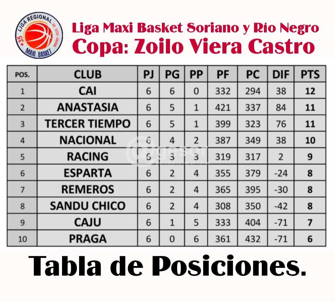 Se completó la 6ta fecha de la Liga de Maxi Basket donde el equipo de Anastasia perdió el invicto en manos del equipo argentino de Tercer Tiempo, mientras tanto Independiente venció a Sandú Chico y es el único invicto del Competencia y por ende el líder, también ganaron Racing de visita al Praga, Nacional de local y Remeros que retornó al triunfo al vencer a CAJU.