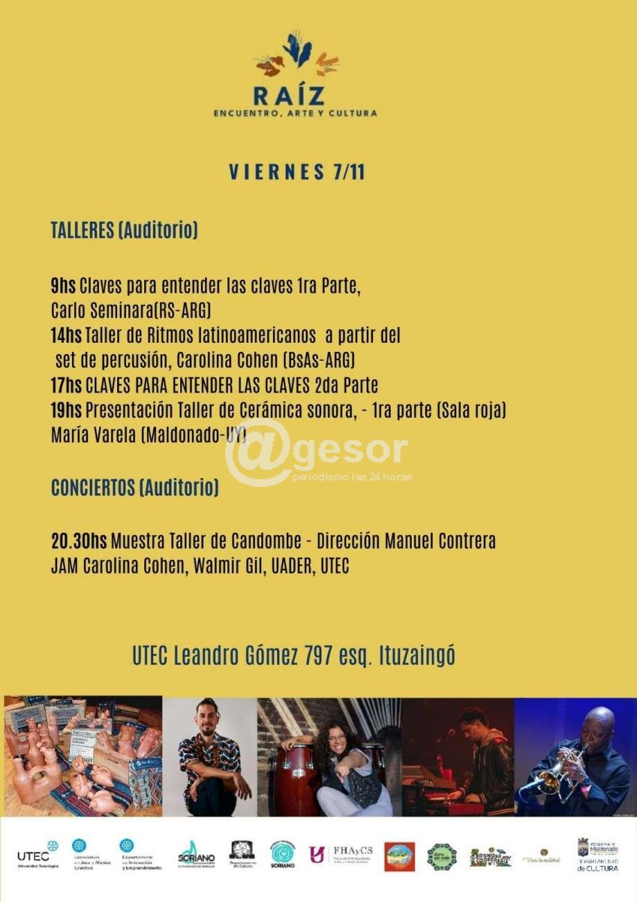 Los días 6,7, 8 y 9 de noviembre se llevará a cabo la segunda edición del Encuentro Raíz, impulsado por la LJMC de UTEC. En el marco del encuentro se realizarán Talleres, Conciertos y Charlas que contarán con la presencia de referentes actuales de la Música Popular de Uruguay, Argentina y Brasil. La edición de este año incluye, además de la actividad programada en la ciudad de Mercedes, la realización de Talleres en la Cooperativa Agraria Tierra que anda, ubicada en Cololó.