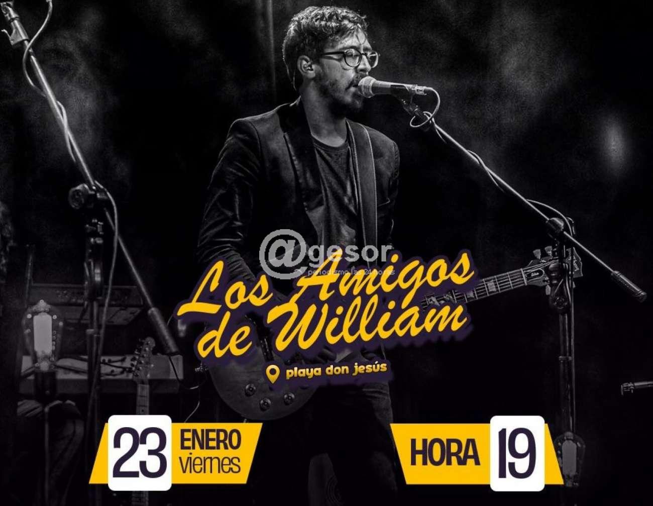 Este viernes 23 desde la hora 19:00 en playa Don Jesús se presentan "Los amigos de William" en vivo, haciendo el lanzamiento oficial de lo que luego será una...